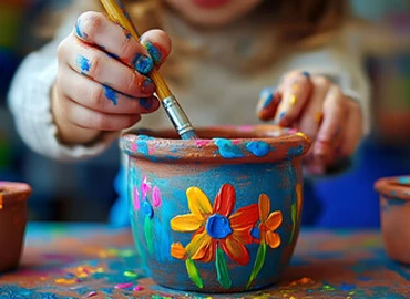 Drawing, painting, crafts, modeling, or manual activities that stimulate imagination, fine motor skills, creativity, and self-expression.